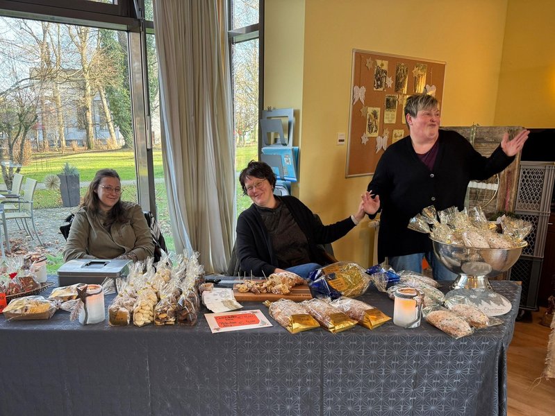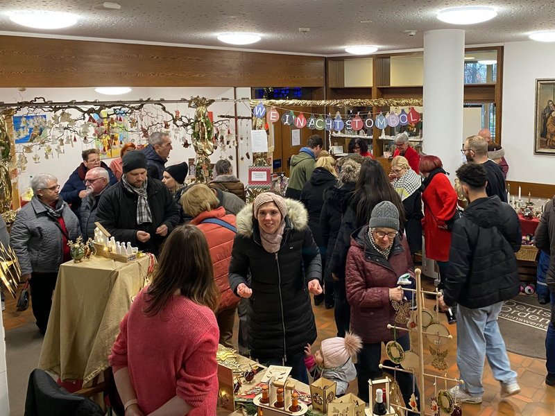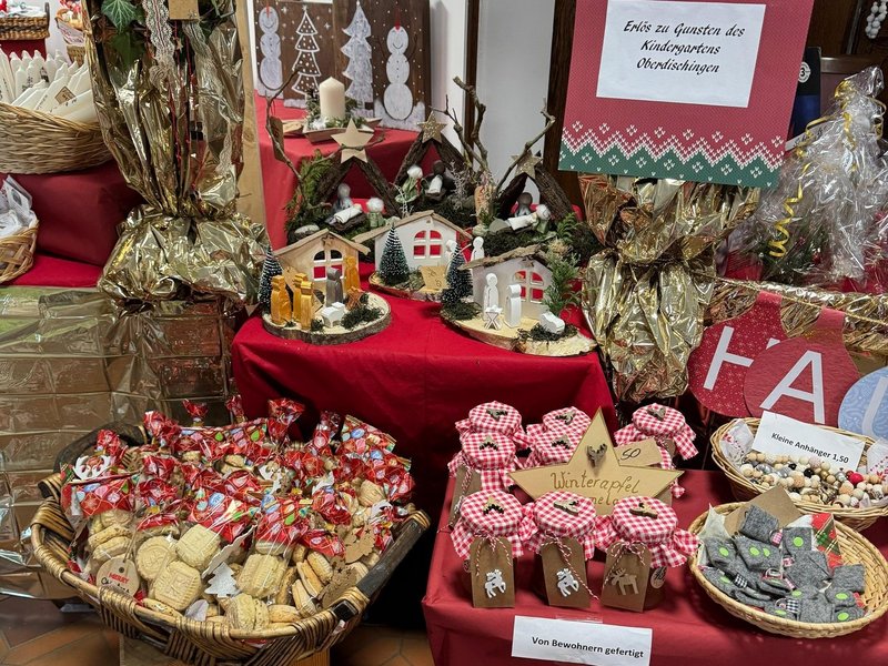 Auch der Stand unseres Hauses wurde (fast) leergekauft, hier wurden wieder allerlei hübsche Dinge angeboten, die unsere Betreuungskräfte über das Jahr unter Mitwirkung unserer Bewohnerinnen und Bewohner gebastelt haben. Neu hinzu kam dann noch eine Tombola, die ebenfalls von unserer Betreuung organisiert, sage und schreibe 1.000 tolle Preise aus Spenden verschiedenster Firmen und Institutionen bereithielt. Der Erlös aus dem Verkauf unserer Bastelarbeiten und der Tombola wird zu gleichen Teilen dem katholischen und gemeindeeigenen Kindergarten in Oberdischingen zufließen, sicherlich wird es hier das ein oder andere Herzensprojekt geben, das man mit dem Geld finanzieren kann. Da wir unseren Verkaufsstand noch bis zum Drei-Königs-Tag geöffnet lassen, freuen wir uns natürlich, wenn sich die Spendensumme noch weiter erhöht.