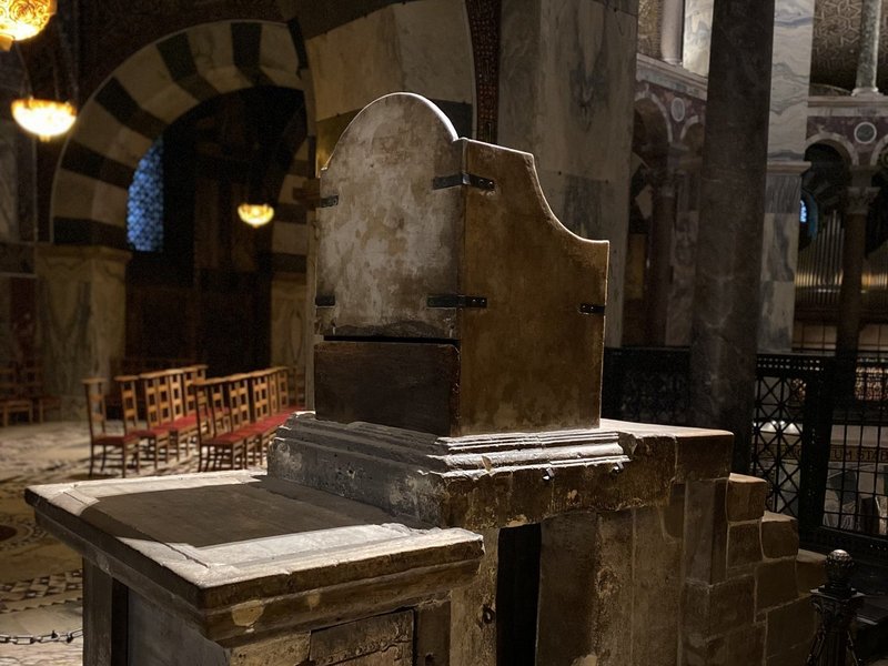 Am Aachener Dom begrüßten die Heimbeiratsvorsitzende Konstanze Eschweiler, Direktor Matthias Bonnie und der Leiter der DO-Seelsorge Pater Jörg den Ehrengast.