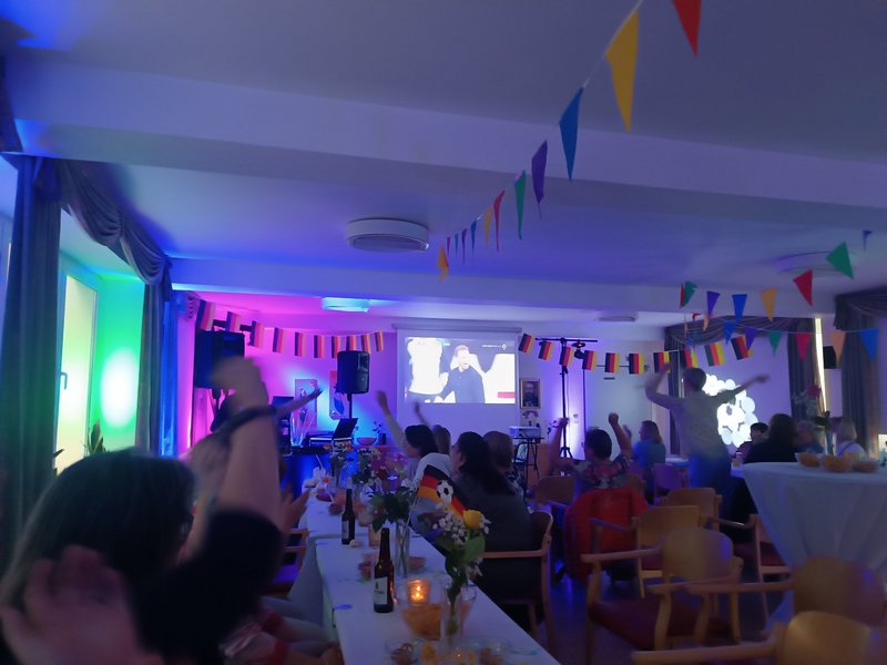 Der Fernsehsaal wurde kurzerhand zu einem EM-Studio umgebaut, sodass vor allem die Fußballfans nicht zu kurz kamen. Der DJ sorgte für die musikalische Unterstützung während des Spiels und auch danach.