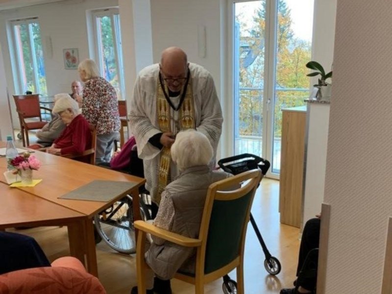 In den Wohnbereichen fand ein einfühlsamer Demenzgottesdienst mit Pater Damian statt, der nicht nur Trost, sondern auch liebevolle Momente schenkte. Inmitten von Liedern, Gebeten und einer unterstützenden Atmosphäre haben wir gemeinsam eine Brücke zwischen Glauben und Alltag geschaffen.