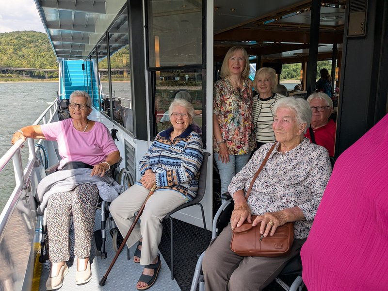 Auch in diesem Jahr organisierten die Soerser Schützen wieder einen Sommerausflug für die Seniorinnen und Senioren der Soers. Trotz kleiner Umwege wegen Bonner Baustellen erreichten wir schließlich das Rheinufer und unser Schiff, die Filia Rheni (Rheintochter). Der niedrige Wasserstand erschwerte zwar den Zustieg, doch mit tatkräftiger Unterstützung der Schützen gelang allen, auch den Rollstuhlfahrer/-innen, der sichere Einstieg – begleitet von Frau Weyer-Dorscheid, Frau Eschweiler und Frau Müller.