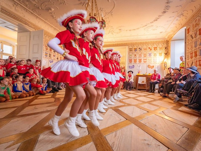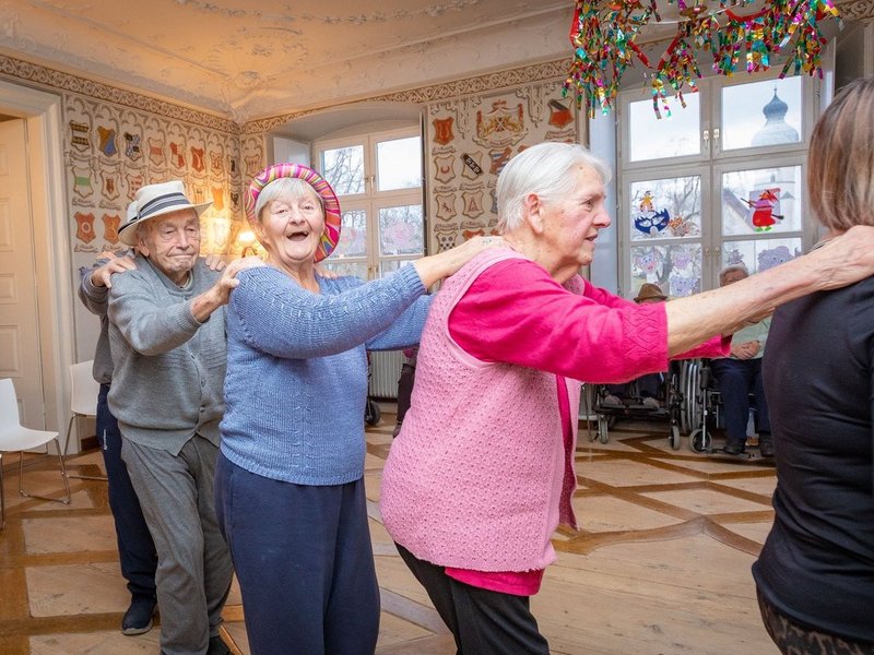 Ausgelassene Stimmung und strahlende Gesichter erfüllten den Wappensaal im Schloss Hochaltingen: Die Tanzgarde der SpVgg Herblingen/Hochaltingen brachte mit ihren Auftritten fröhliche Faschingslaune ins Pflegeheim Haus St. Marien.