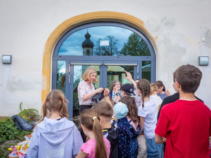 Die Erwachsenen unterstützten die Kleineren oder entspannten sich mit den Bewohnerinnen und Bewohnern auf der neu möblierten Terrasse. Bei Kaffee und Kuchen genossen alle das frühlingshafte Wetter und beobachteten das lebhafte Treiben. Es war ein herrlicher Nachmittag voller Lachen und Leben im Schloss.