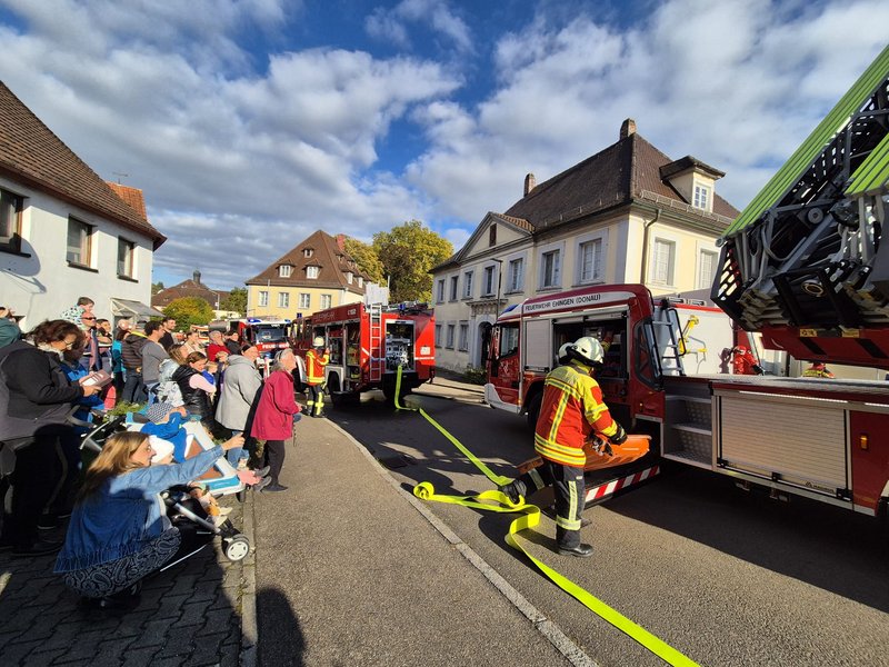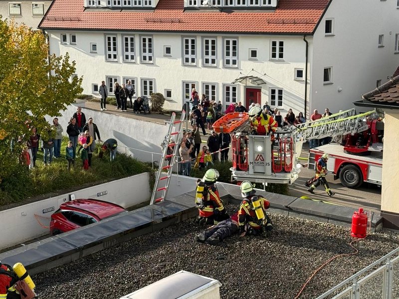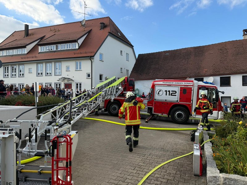 Am Wochenende fand die groß angelegte Hauptübung der Feuerwehren Oberdischingen und Öpfingen im Haus St. Hildegard statt. Rund 60 Einsatzkräfte der Freiwilligen Feuerwehren Oberdischingen, Öpfingen und Ehingen sowie des DRK Ortsverbandes Oberdischingen nahmen teil. Zahlreiche Schaulustige gesellten sich bei herrlichem Übungswetter dazu und fanden auf der Wiese am Haus ausreichend Platz mit bester Aussicht. Feuerwehrkommandant Christof Schenk moderierte und erklärte die Geschehnisse für die Zuschauer und erklärte nebenbei viele wichtige Details zur Übung und der Freiwilligen Feuerwehr.