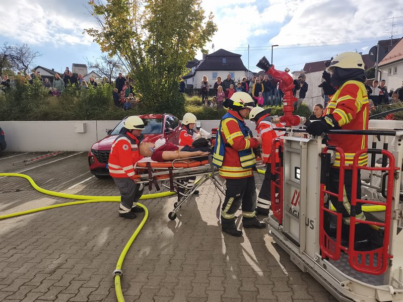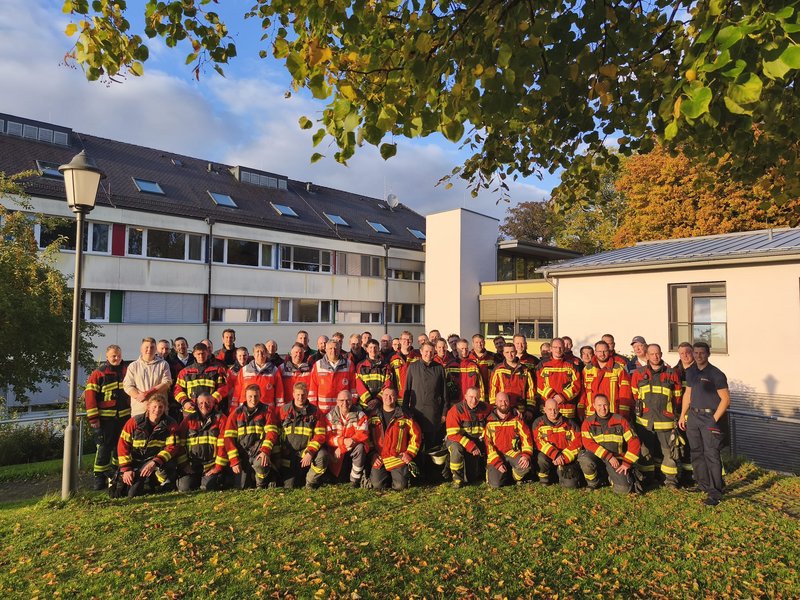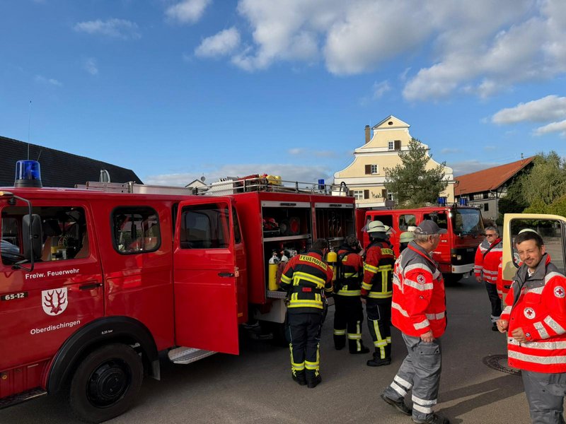 Zum Abschluss gab es für alle Beteiligten Würstchen und Getränke, die sich alle bei schönstem Herbstwetter auf der Terrasse des Pflegeheims schmecken ließen. Hier hatten auch alle Mitwirkenden die Gelegenheit, Erfahrungen auszutauschen, unter anderem mit dem Oberdischinger Bürgermeister Wolfgang Schmauder. Die Ergebnisse zeigten, dass Zusammenarbeit und Abläufe gut funktionieren und Übungen wie diese gleichzeitig wichtige Erkenntnisse für künftige Einsätze liefern.