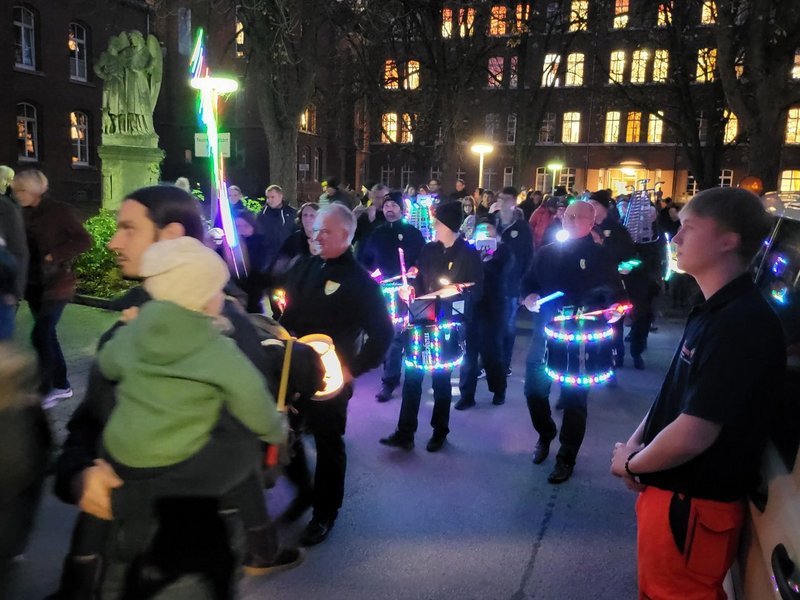 Ca. 400 Personen versammelten sich im Innenhof der Einrichtung und stimmten St. Martins-Lieder an. Viele Kinder mit ihren kreativ gebastelten Laternen brachten Bewohner/-innen und Angehörige zum Staunen. Startpunkt des großen St. Martinszuges in der Aachener Soers war wieder das Haus St. Raphael. Von hier aus ging man zum Schützenplatz, wo ein großes Martinsfeuer veranstaltet wurde.