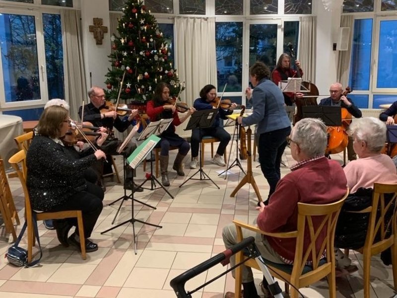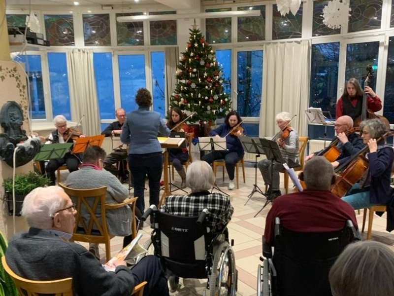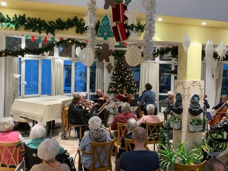 Das Streicher Orsombel der Erwachsenen Akademie Sülz erfreute die Bewohnerinnen und Bewohner mit einem klassischen Konzert. Die 12 Mitglieder/-innen spielten Werke von Mozart und Brams und am Ende durften alle Anwesenden zu bekannten Weihnachtsliedern mitsingen.