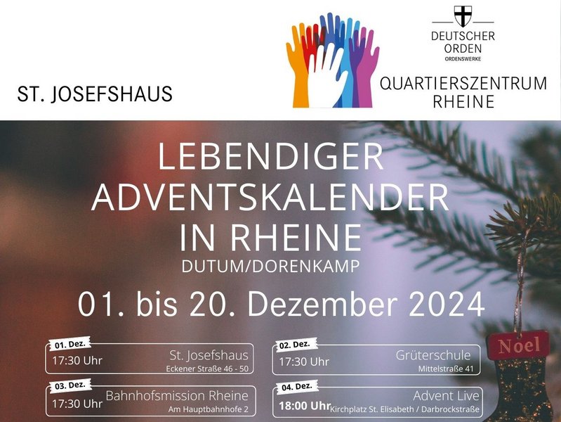 Entdecken Sie das Quartier Dutum/Dorenkamp und lernen Sie unsere örtlichen Vereine, Einrichtungen oder Initiativen kennen. Vom 01. bis 20. Dezember 2024 bietet das St. Josefshaus den