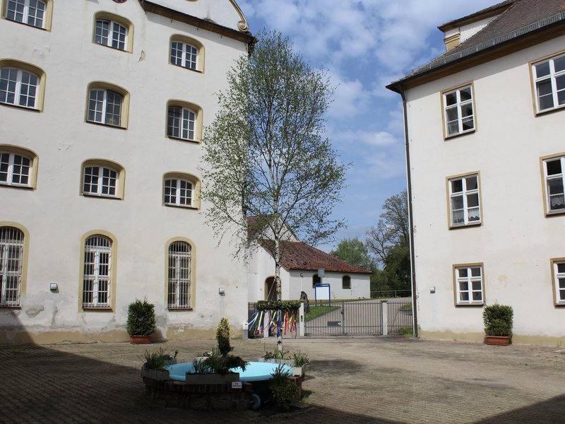 Auch unser Brunnen im Innenhof bekam den passenden Schmuck zum ersten Mai.
