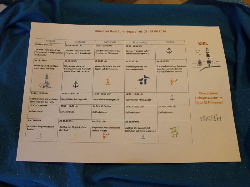 Wir sind dann mal weg. Nicht auf dem Jakobsweg, auch wenn dieser am Haus St. Hildegard in Oberdischingen vorbeiführt. Und auch ans Meer sind wir natürlich nicht wirklich gefahren. Gefühlt waren wir in diese Woche aber trotzdem weit weg von der Schwäbischen Alb, denn wir machten Urlaub im Haus, und zwar am Meer. Mit allen unseren Bewohnerinnen und Bewohnern, mit den Mitarbeitenden und Angehörigen.