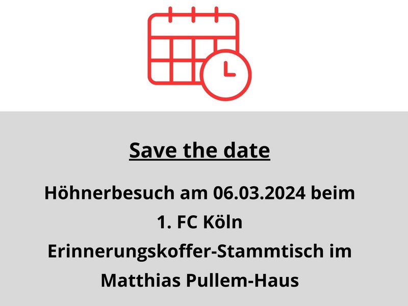 Am 6. März 2024 findet der 1. FC Köln Erinnerungskoffer-Stammtisch mit den Höhnern und Karl-Heinz Thielen im Matthias Pullem Haus statt.