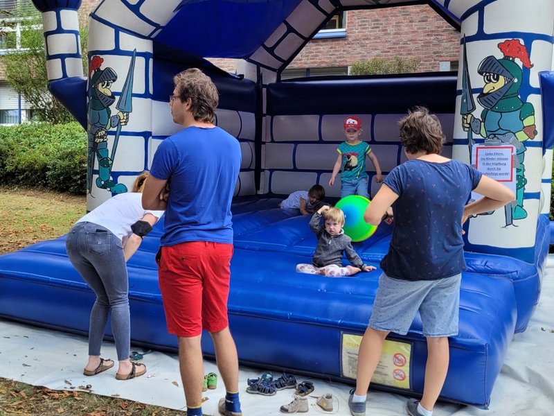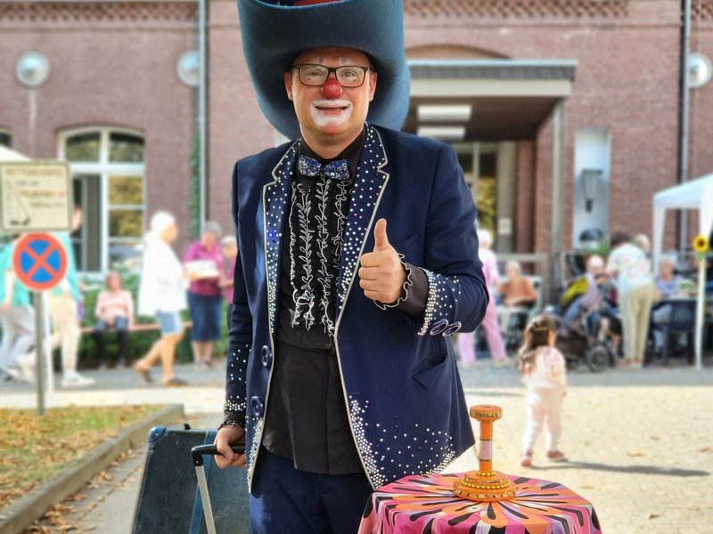 Neben einer Live-Band und einem Akkordeonspieler waren zur Unterhaltung eine Hüpfburg für die Kinder und ein Zauber-Clown für Groß und Klein zugegen.