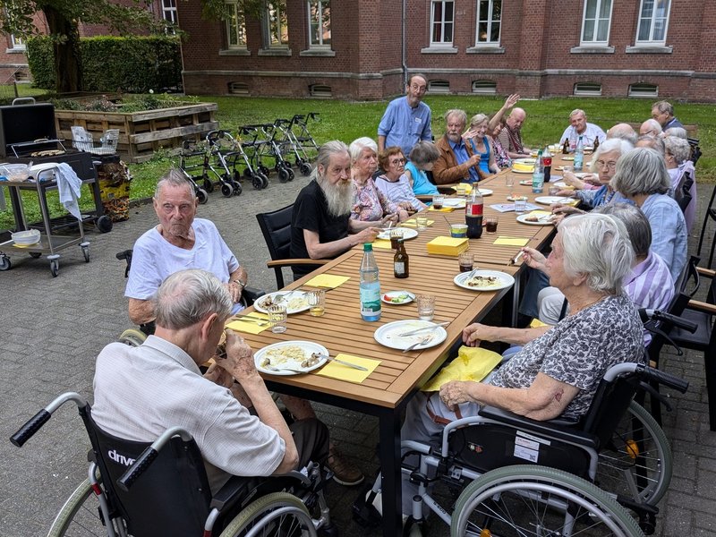 Das dachte sich das Sozialdienstteam vom Seniorenzentrum Haus St. Raphael und machte den Bewohner/-innen des Neubau 1 an einem schönen Spätnachmittag eine besondere Freude mit leckerem Gegrilltem zum Abendbrot. Man saß im Innenhof am langen Tisch und freute sich auch nach dem Essen noch eine ganze Weile am gemütlichen Zusammensein.