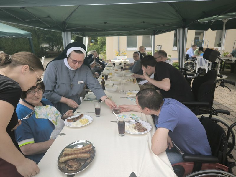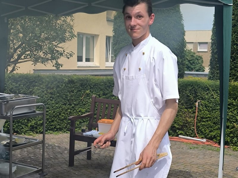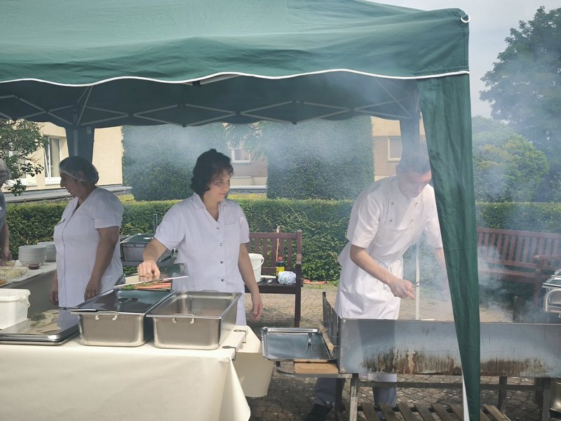 Darüber, dass der Sommer zurückkehrte, freuten sich unsere Bewohnerinnen und Bewohner wie auch wir. So war es möglich, ein spontanes Grillen auf die Beine zu stellen. Alle Teilnehmenden genossen sichtlich das gute Wetter, freuten sich über frisch gegrillte Bratwürstchen, Steaks und Bauchspeck. Natürlich fehlten auch die Kaltgetränke zu einem guten Grillen nicht.