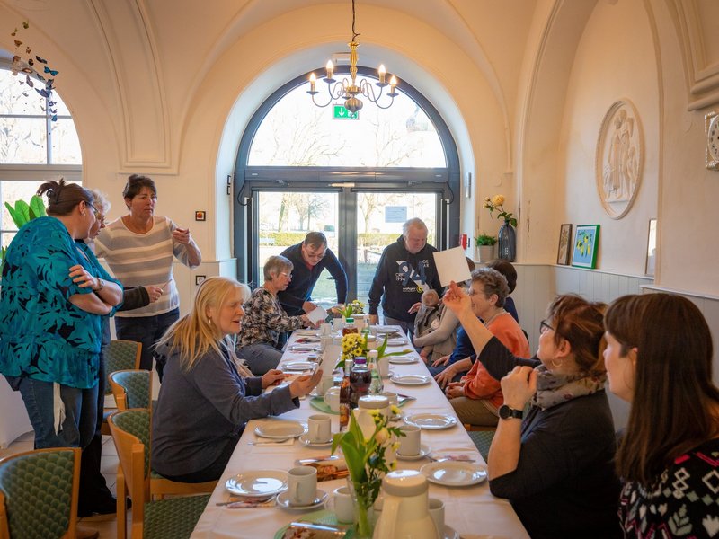 Ein festlicherer Ort für eine Abschiedsfeier lässt sich schwer finden: In der schön dekorierten Orangerie trafen wir uns, um Karin Reiter, unsere langjährige Hauswirtschafts- und Küchenleitung, gebührend zu feiern. Über 23 Jahre war sie Teil unseres Teams und geht nun in den wohlverdienten Ruhestand. In verschiedenen Ansprachen konnten wir uns an viele schöne wie lustige Momente zurückerinnern und unserer langjährigen Kollegin für ihr großes Engagement und ihre hervorragende Arbeit danken. Im Anschluss ließen wir den Nachmittag mit viel Kaffee, Kuchen und guten Gesprächen ausklingen. Wir wünschen Karin Reiter das Allerbeste für ihren Start in den neuen Lebensabschnitt!