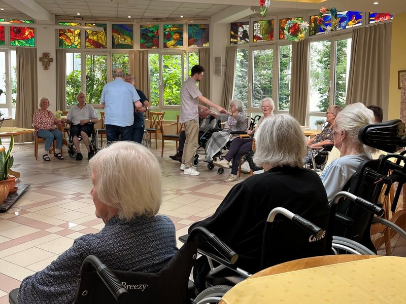 Unser Pflegefachmann Jan hat wieder die nostalgischen Platten für unsere Bewohner/-innen bei der Veranstaltung „Jan´s Plattenteller“ aufgelegt.