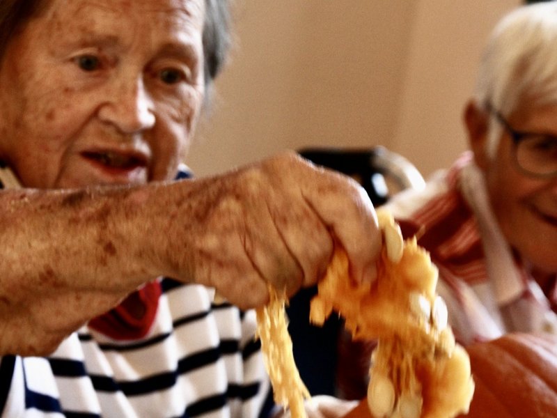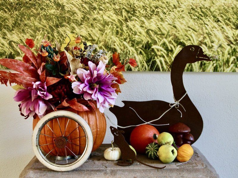 Cinderellas Kürbiskutsche ist einsatzbereit, Dahlien und Beeren leuchten mit dem Herbstlaub um die Wette, die wunderschönen selbstbemalten Tischsets, jedes ein Unikat, erfreuen die Bewohner/-innen bei jeder Mahlzeit.